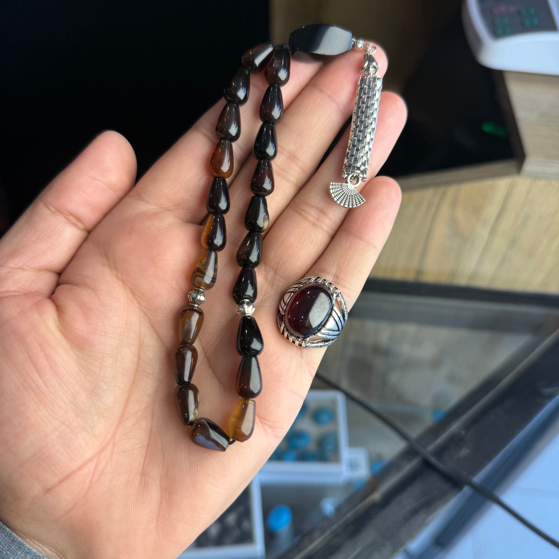 Elegant Black Aqeeq ring paired with a beautiful Black Antique Sulaimani stone.