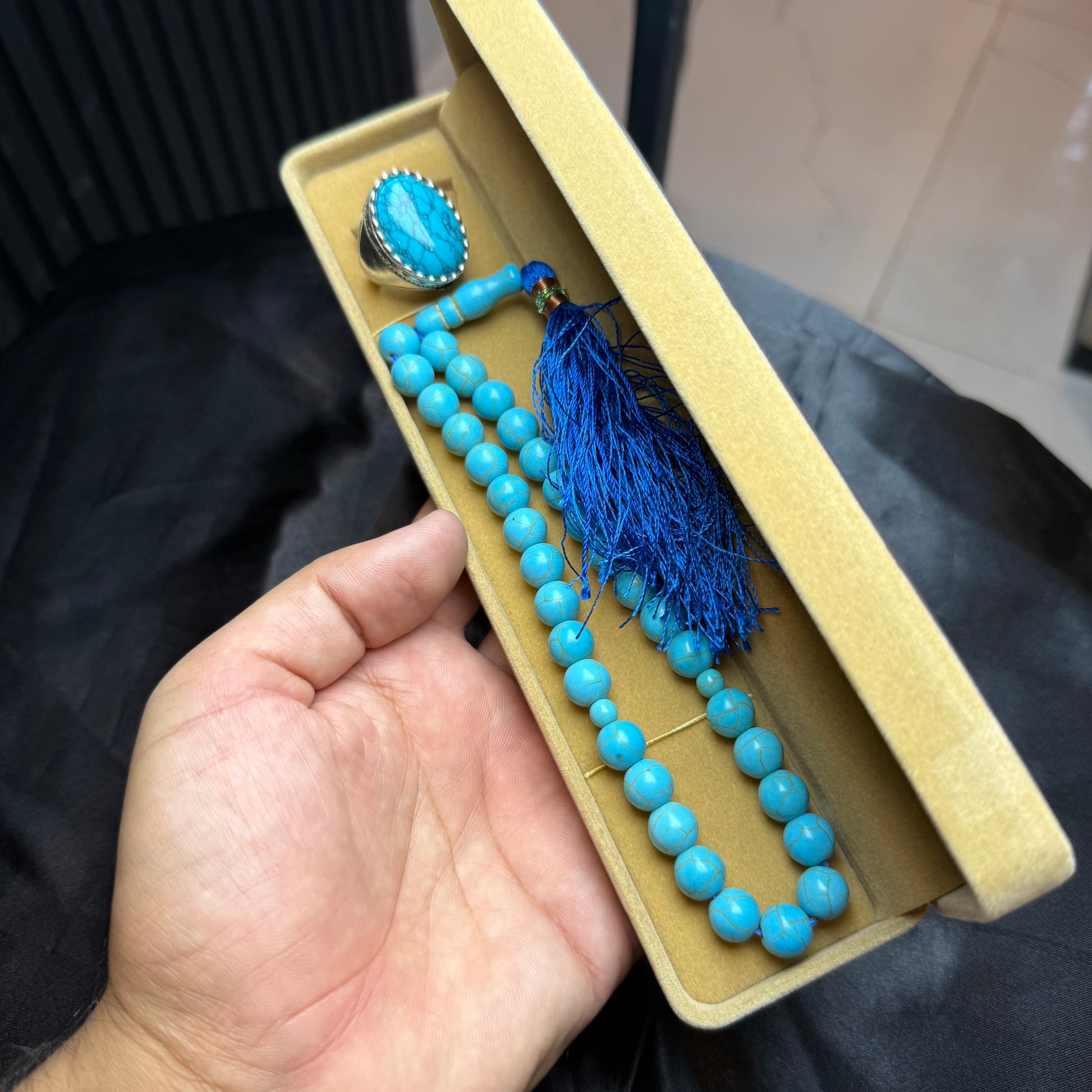 Feroza Tasbih with Feroza Ring – Natural Stone Combo