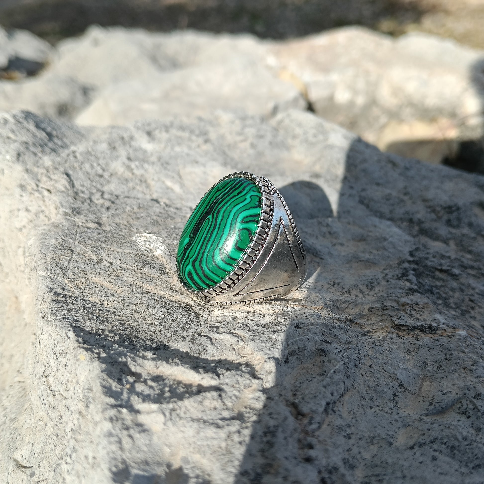 Beautiful Handcrafted Green Malachite Ring Unique and Beautiful Natural Stone Ring