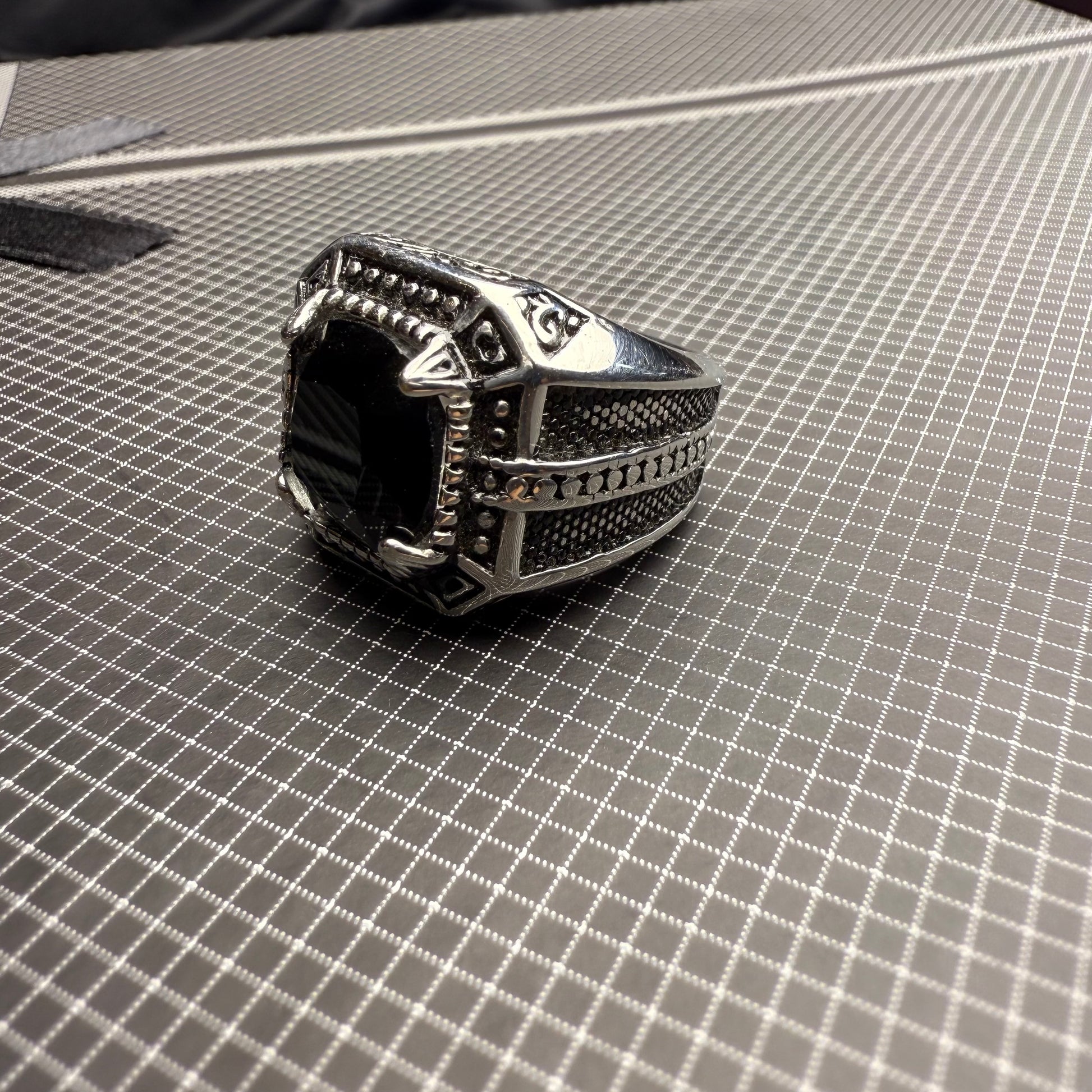 Elegant Italian stainless steel ring featuring a stunning natural Black Aqeeq stone. Designed for style and durability, this ring adds a bold touch to your look. Perfect for daily wear or special occasions. Enjoy free home delivery and premium craftsmanship in every detail.