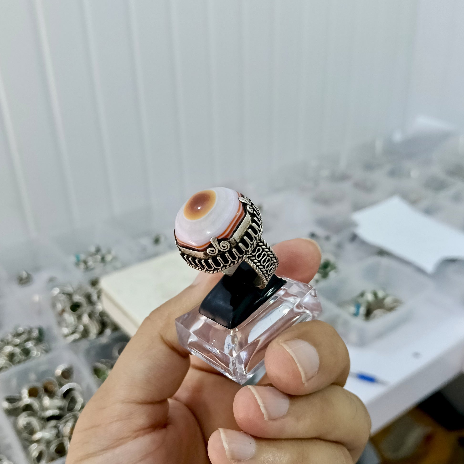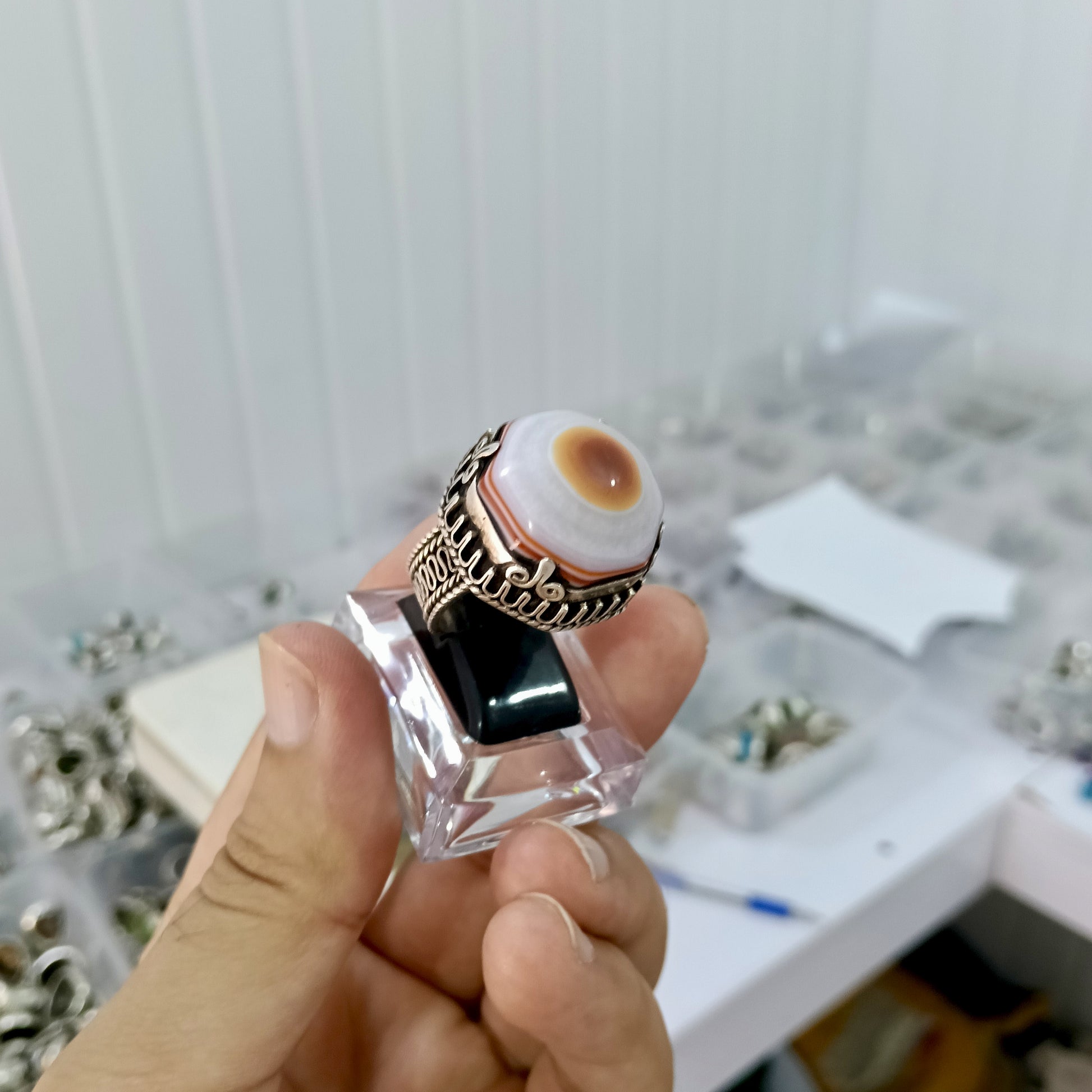 Rare Cat Eye Agate (Aqeeq) Stone Silver Ring – Unique Natural Beauty