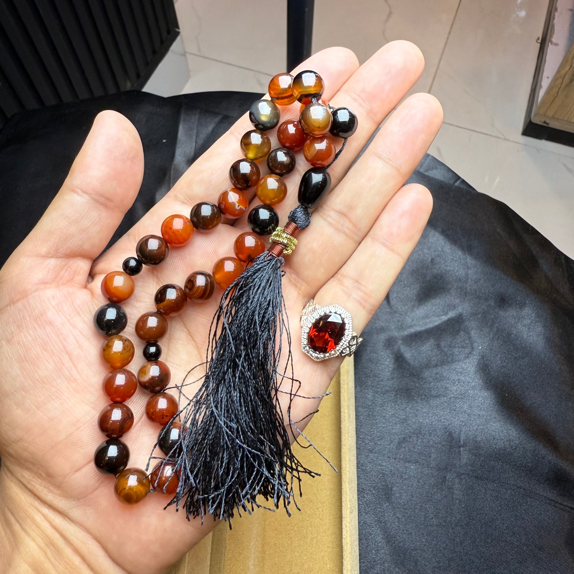 Red Zircon Stone Ring with Yammni Aqeeq Tasbih – Exclusive Stone Deal