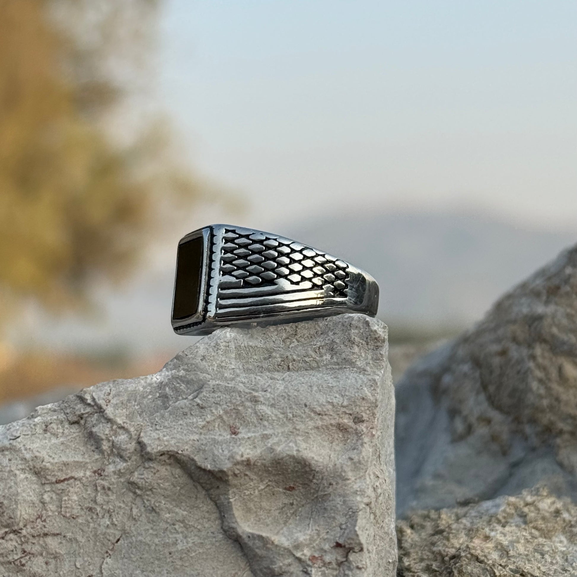 • Black Aqeeq Turkish Ring — modern masculine design