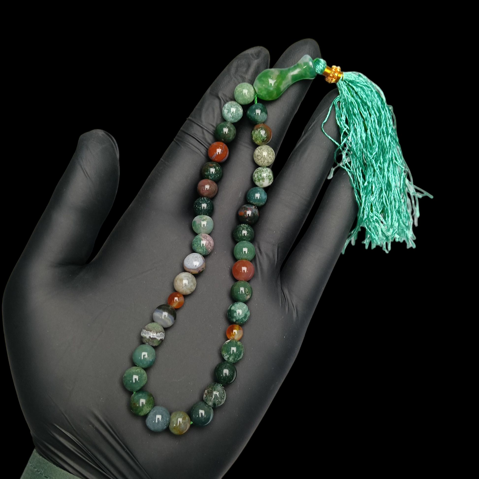 💚 قدرتی سبز عقیق کی روحانی تسبیح – 33 دانے 💚