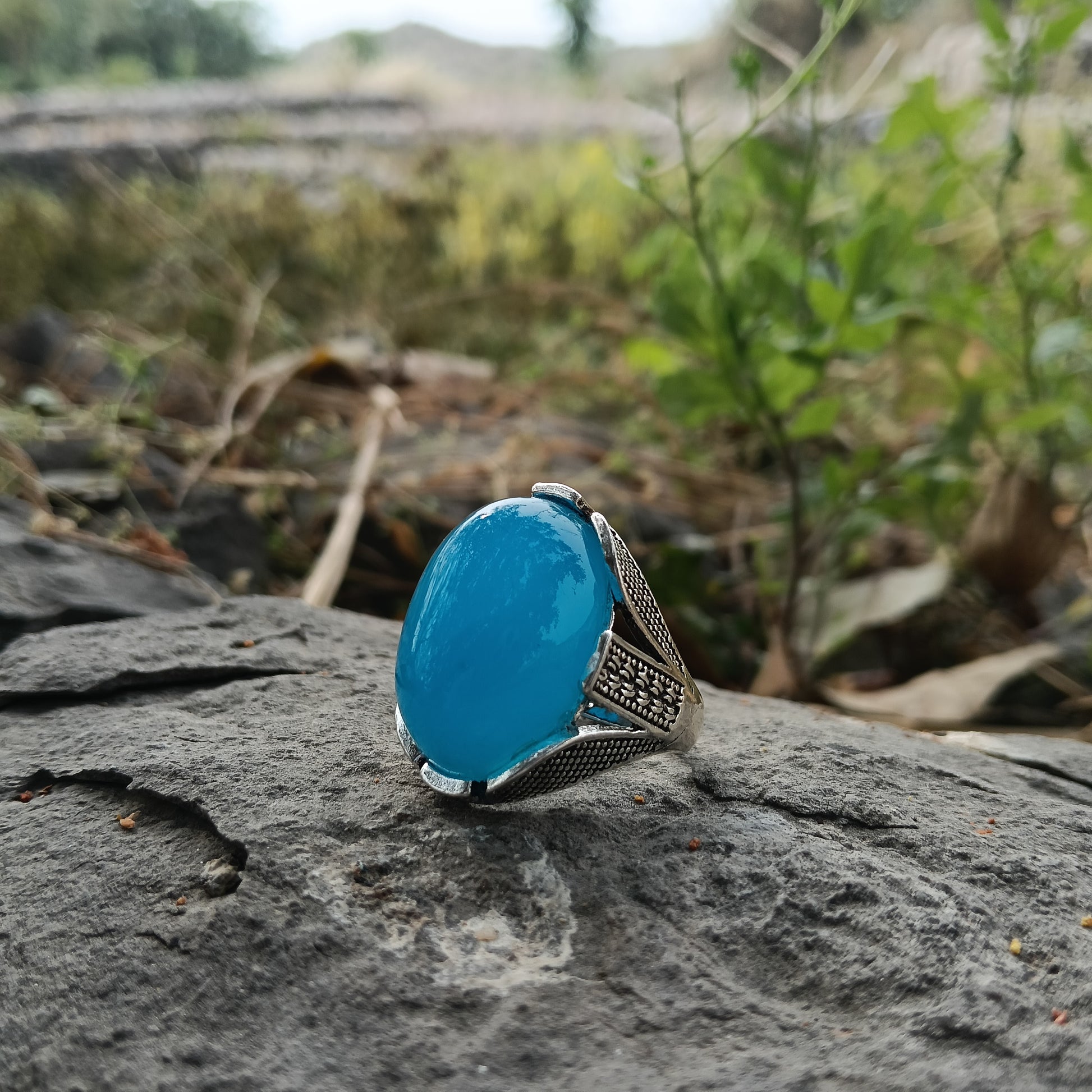 A Beautiful Turkish blue aqeeq ring with free home delivery